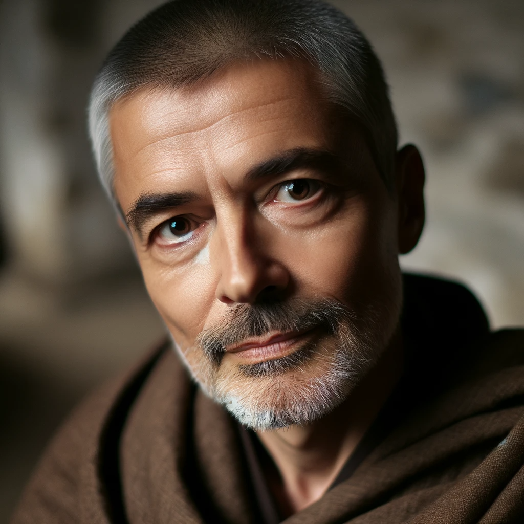 Brother André presents himself as a soft-spoken and curious monk, his demeanor exuding a gentle wisdom. With a humble appearance that blends seamlessly into the monastery's tranquil environment, he possesses an unassuming stature, his eyes often reflecting a thoughtful, introspective quality. His monk's robe, worn with a sense of quiet pride, masks a resilient physique honed by years of disciplined living.